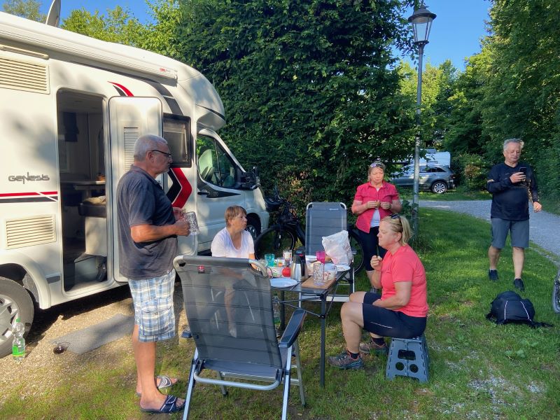 Wir, das sind sechs Personen, drei Frauen und drei Männer zwischen Mitte 50 und Mitte 60, Natur- und Frischluftliebhaber. Einer wollte lieber nicht die ganze Strecke mitradeln, stellte sich aber dankenswerterweise mit seinem Wohnmobil als Mannschafts-, Service- und Transportwagen zur Verfügung, gleichzeitig sollte das Wohnmobil auch für ihn und seine mitradelnde Frau als Beherbergung auf der Tour dienen, während wir anderen vier Personen in Hotels übernachten wollten.