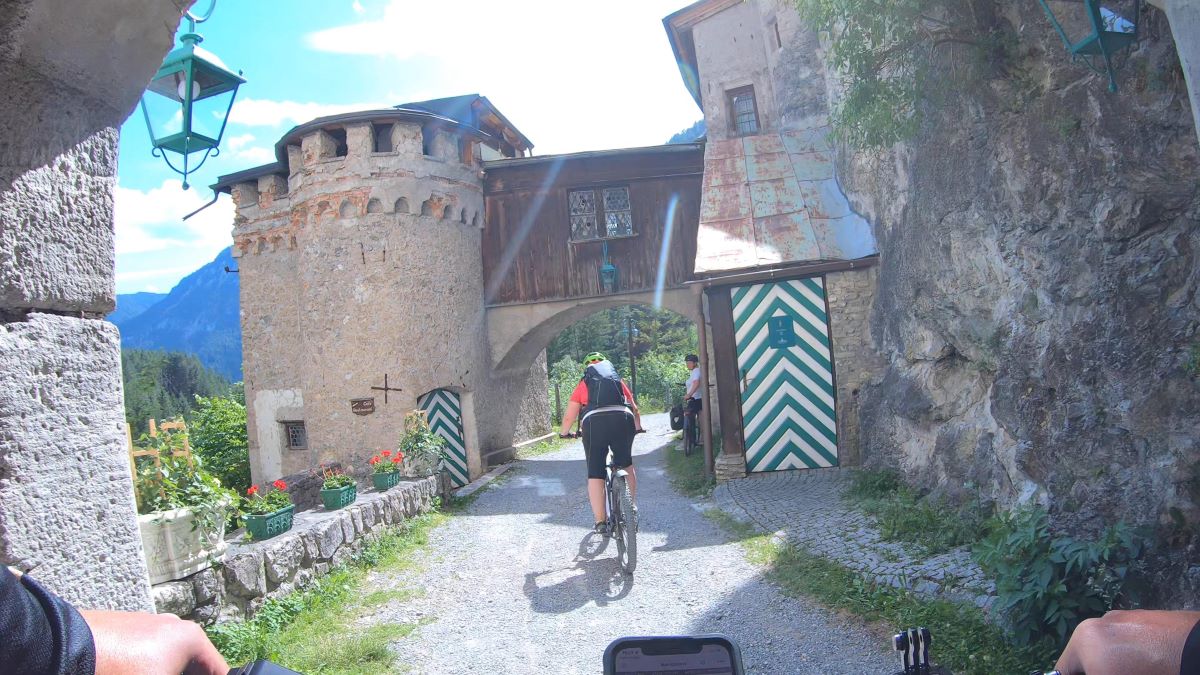 Der Via Claudia Augusta Radweg führt uns unter anderem direkt durch den Torbogen der Burg Fernstein. Das 1288 erbaute Gebäude ist heute ein Hotel.