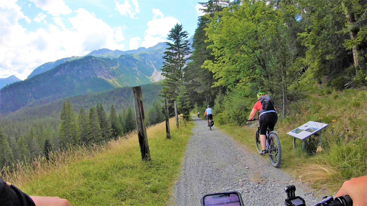 Nach der Abfahrt trafen wir unseren Wohnmobilisten, der uns dankenswerter Weise ein paar kalte Getränke aus dem Bordkühlschrank reichte, bevor wir uns in einem nahen Bach etwas die Füße kühlten und den tollen, weiterhin landschaftlich einmalig schönen und einfach zu bewältigenden Weg zu unserem ersten Etappenziel nach Imst fortsetzten.