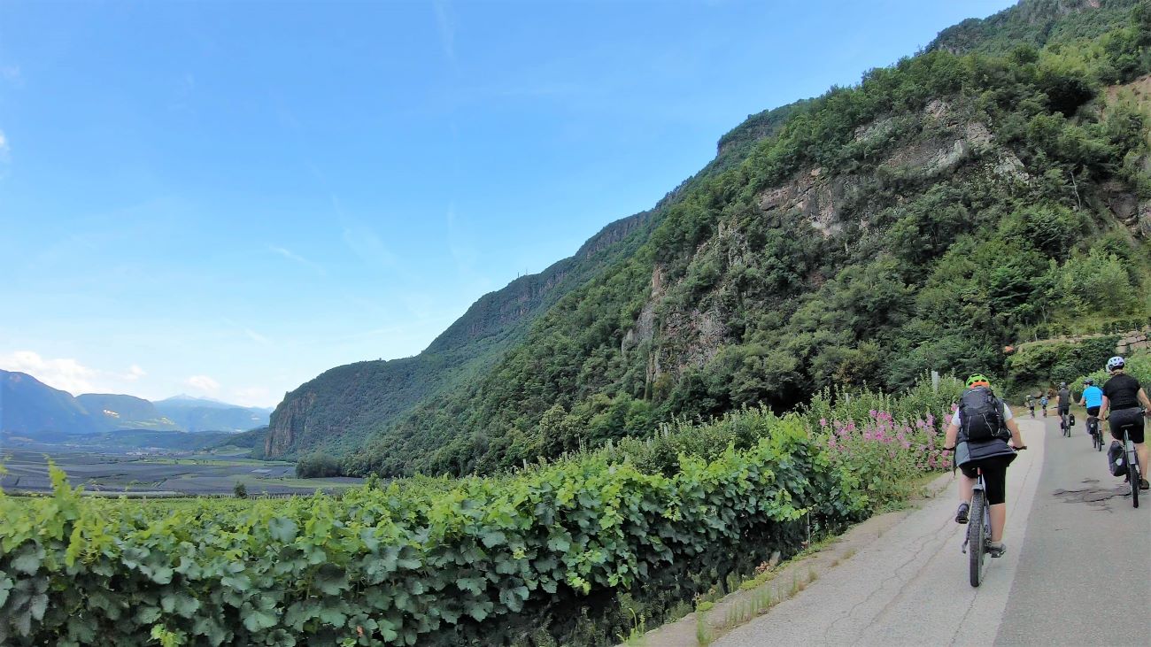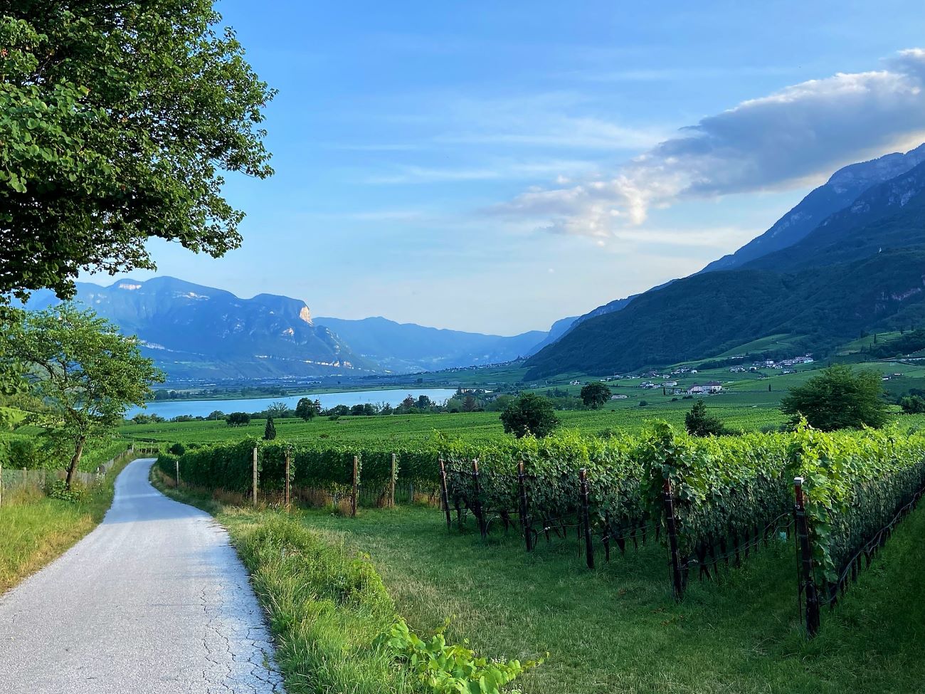 Ich schlage zusätzlich vor, bis Mezzocorona die Weinstraße über Tramin, Kurtatsch, Margreid und Aichholz zu nehmen. Wir haben diese Route im Frühjahr erstmals probiert. Die Straße ist wirklich abwechslungsreich und bietet einige sehr schöne Ausblicke über das Etschtal. Der Autoverkehr war sehr moderat.Für die nicht elektrisch unterstütze Fraktion muss ich erwähnen, dass man dabei durch den Anstieg von Frangart (Bozen) nach Eppan und einige Wellen nach dem Kalterer See vielleicht gut 300 Höhenmeter auf diesem Weg in Kauf nehmen muss. Die Steigungsprozente sind aber, abgesehen von 2 kurzen Rampen auf dem Radweg nach Eppan und einem Stich auf dem Weg zum Kalterer See, sehr moderat.