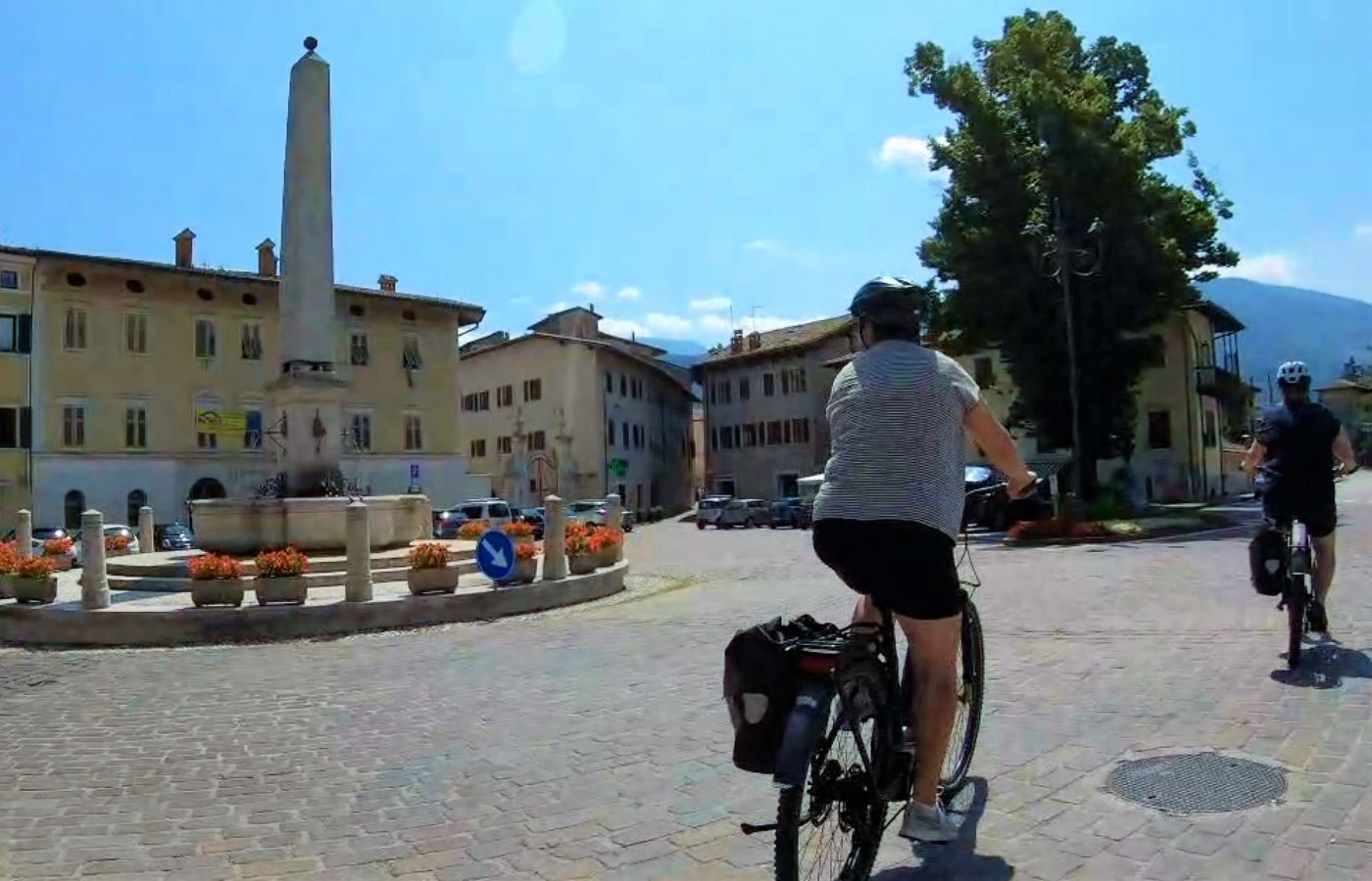 Nach diesem letzten Halt vor dem Gardasee gehen wir voller Erwartungen die letzten Biegungen der Reise an. Nach wenigen Kilometern verlassen wir den „glattgebügelten“ Radweg an der Etsch. Es geht hinauf über kleine Nebenstraßen und Feldwege bis Mori, das wir durchqueren.