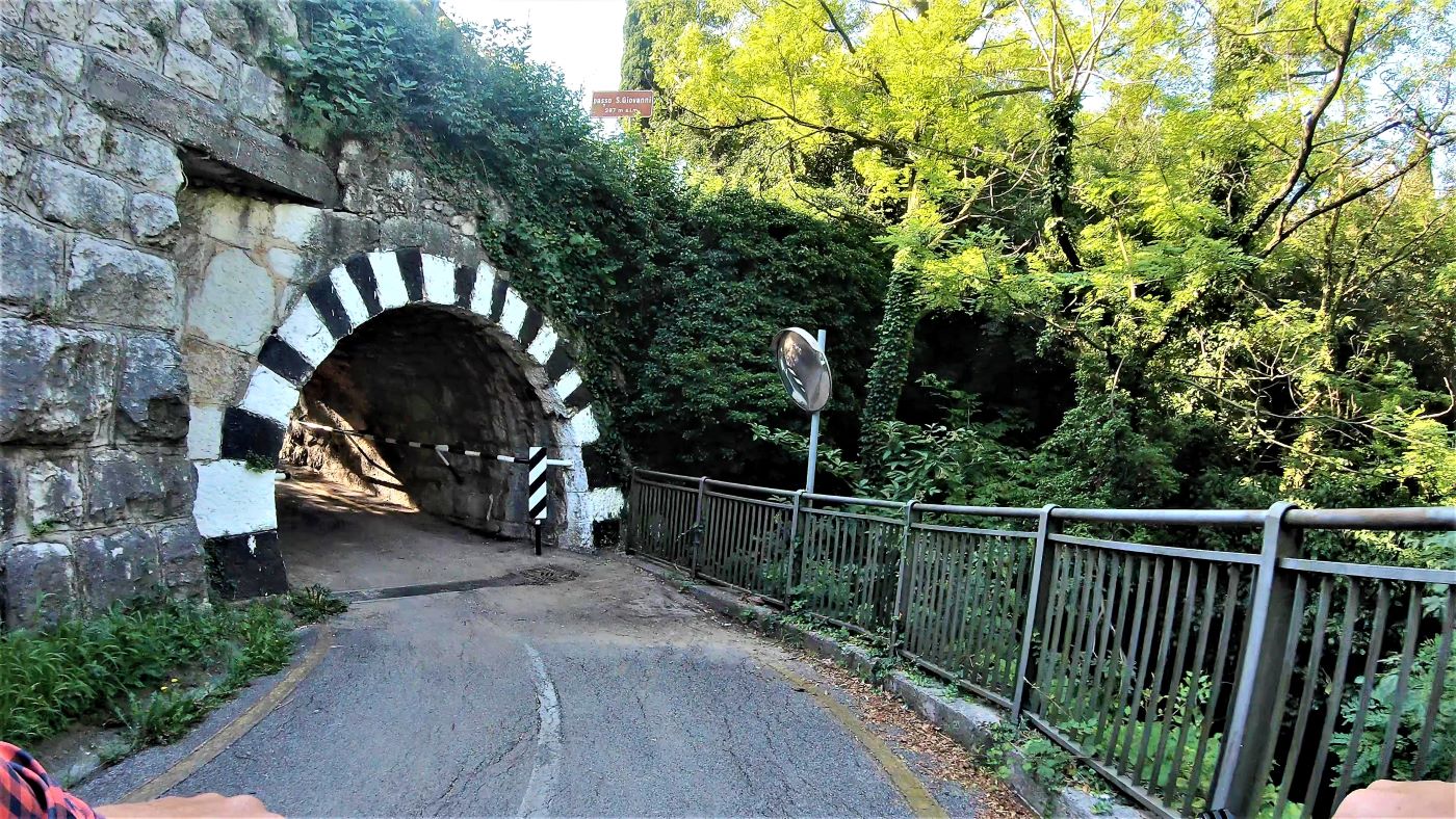 Danach stoßen wir auf eine belebte Hauptverkehrsstraße, allerdings ist der Fahrradverkehr sehr gut vom Autoverkehr entflochten – kein Problem, gut gelöst. Nur auf den Gegenverkehr durch Radfahrer sollte man achten, die Wege sind sehr schmal und zuweilen sehr kurvig und steil. Angebrachte Spiegel helfen tote Winkel zu minimieren.