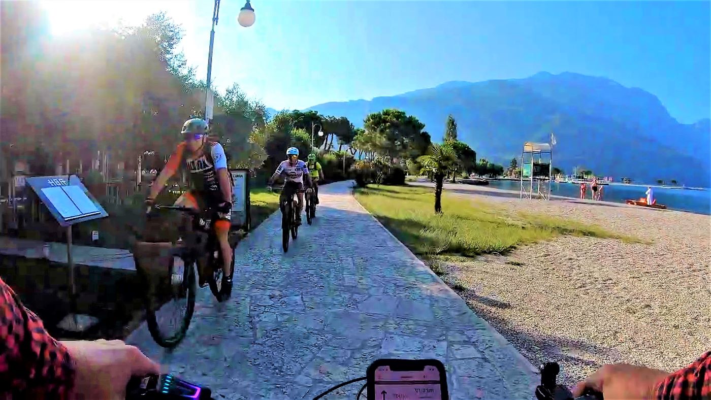 Strandpromenade von Torbole am Gardasee mit Mountainbikern
